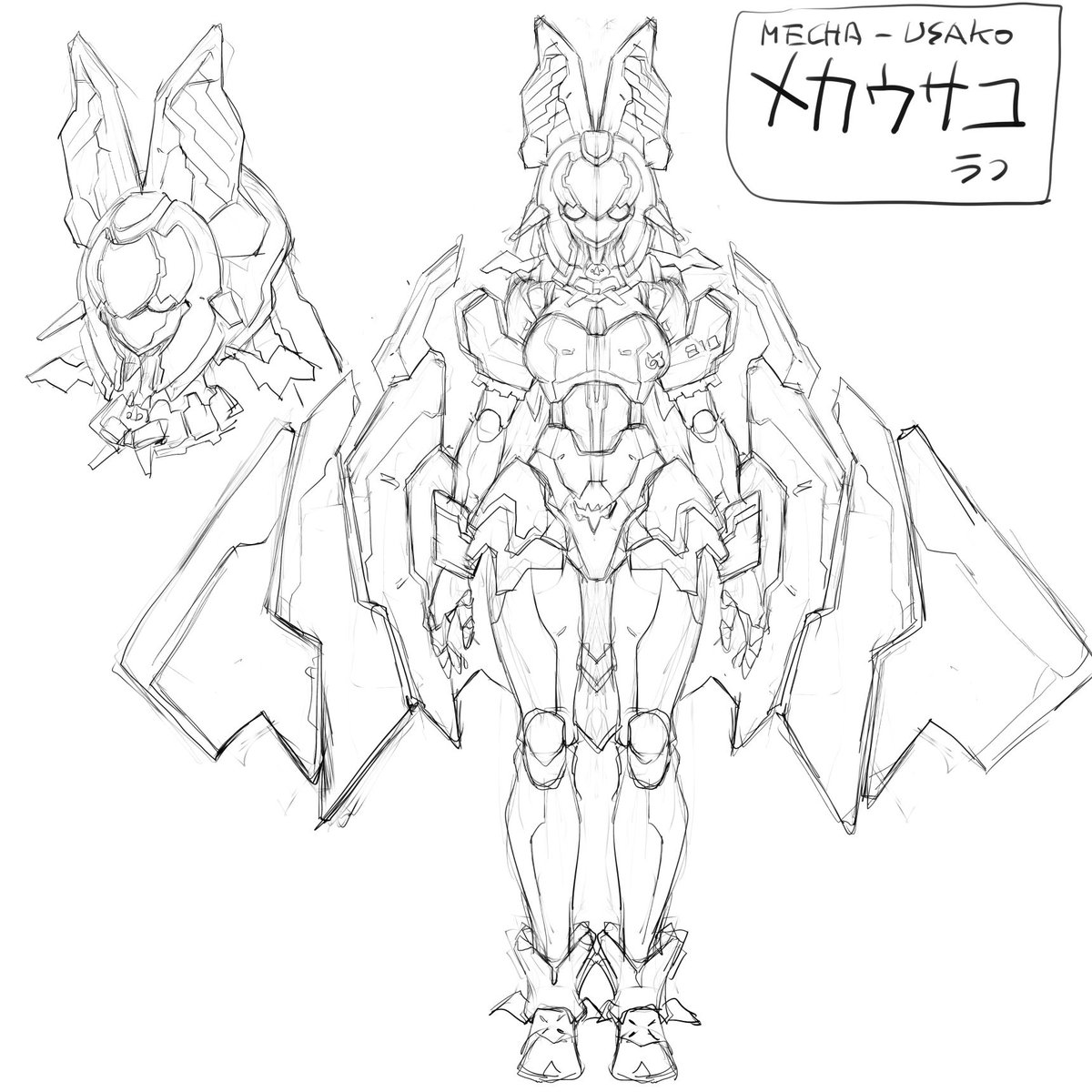 メカウサコ、スーパー手癖でラフったけどこういう方向性でええのんか。 #うさこペイント