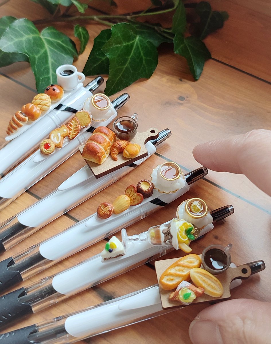 食べものへの愛と理想と執着を粘土にぶつけて楽しくいっぱいミニチュアフードを作っています!! ペンにしているのでいつでも使いながら眺めて楽しめるよ~ 今月はまるごと桃の杏仁パフェセット、ドーナツ、海鮮丼を作りました✨ 販売先(minne)▷minne.com/@torakostamp Thanks!! @Lupopo_cafe
