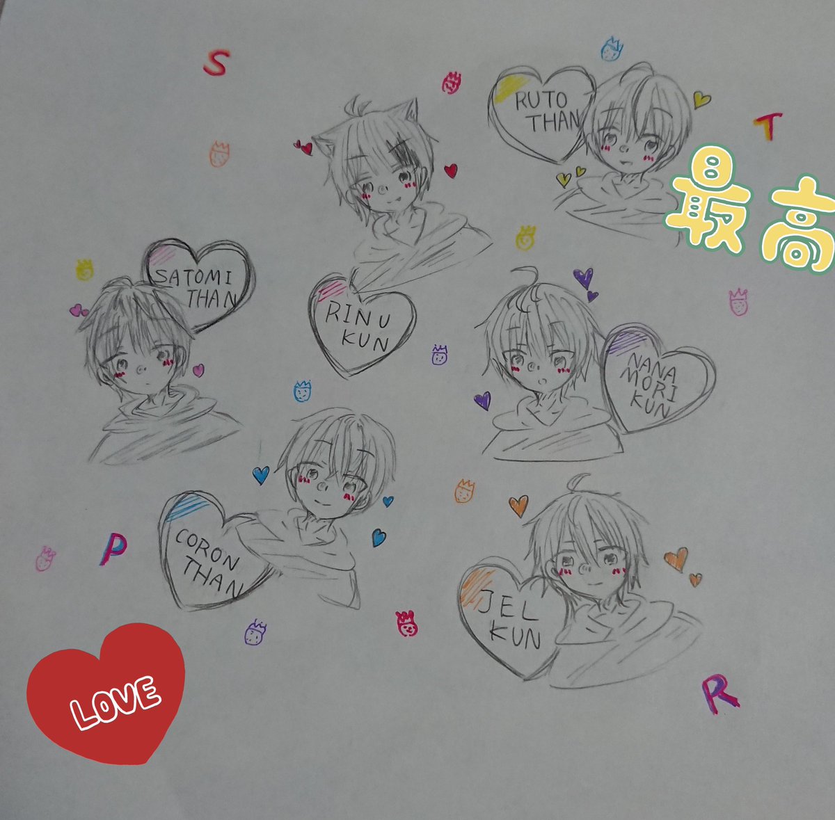 💗、♥、💙、💛、💜、❤💛の順で描いた 最後になるにつれて、雑感増してやがる... #すとぷり #すとぷりギャラリー #すとぷり描いてみた #すとぷりすなーさんと仲良くなりたい #すとぷりすなーと繋がりたい #すとぷり絵描きさんと繋がりたい