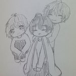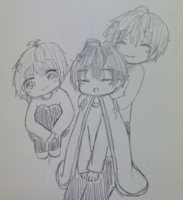すやすや寝てるなーくんに毛布かけてあげるさとちゃんと 優しい目で横からなーくんを見るジェルくん 体育座り初めて描きました)))) #すとぷりギャラリー #イラスト好きさんと繋がりたい #イラスト好きと繋がりたい