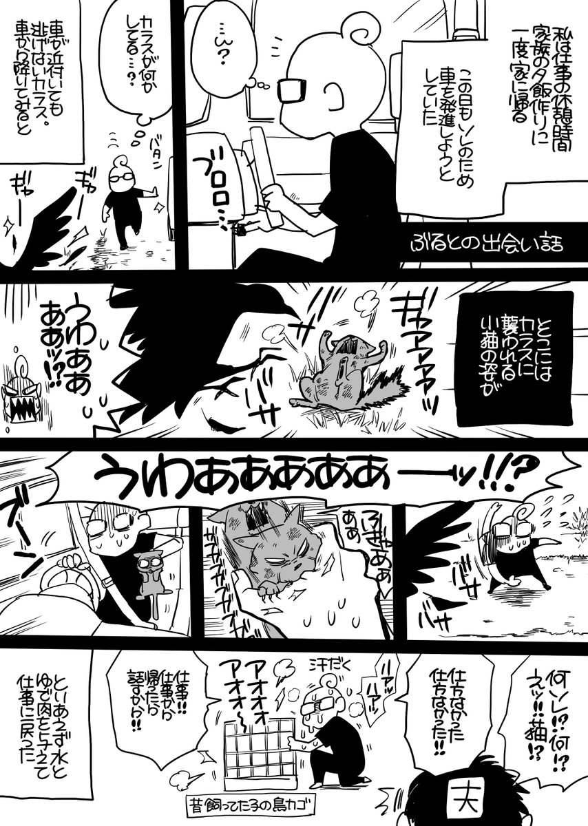 間に合わなかったけど、猫の日に猫ちゃんの素敵な漫画を読んで私もぶるとの出会いを残したく全部で4頁の漫画描きます。続きます。「ぶるとの出会い話①」