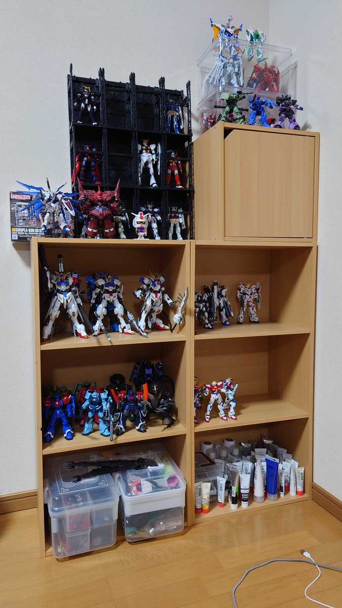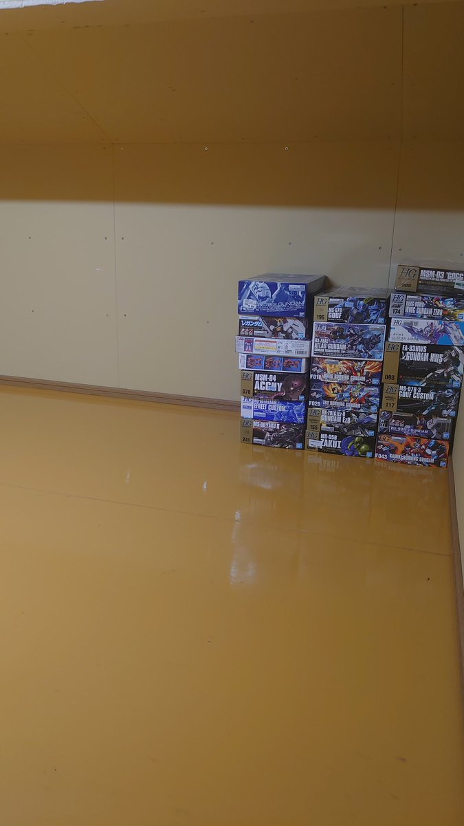 引っ越し先はでマイルームが出来たのでボチボチ作成始めまーす♪ただガンプラを飾る棚が無いのでガンプラ達は箱の中でお休み中です(涙) #ガンプラ #ガンプラ好きな人と繋がりたい #ガンプラの画像貼るとRTされると聞いて