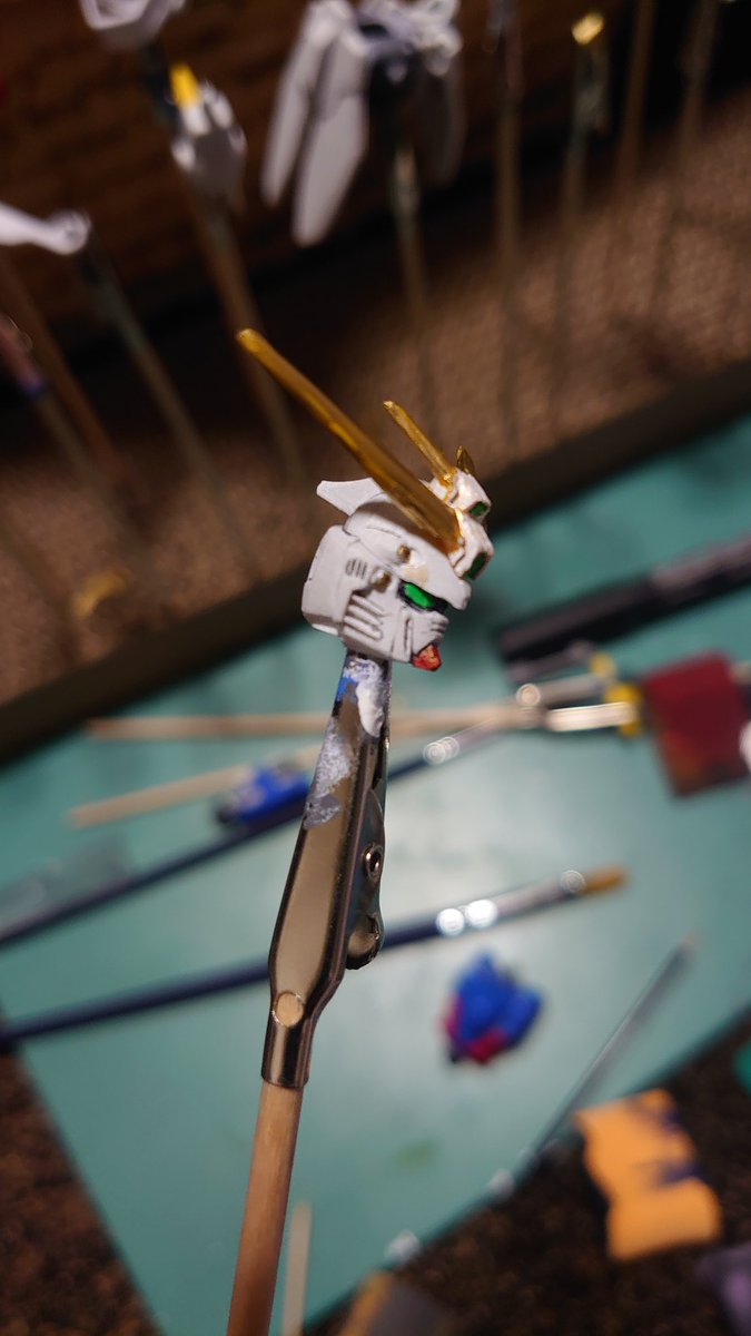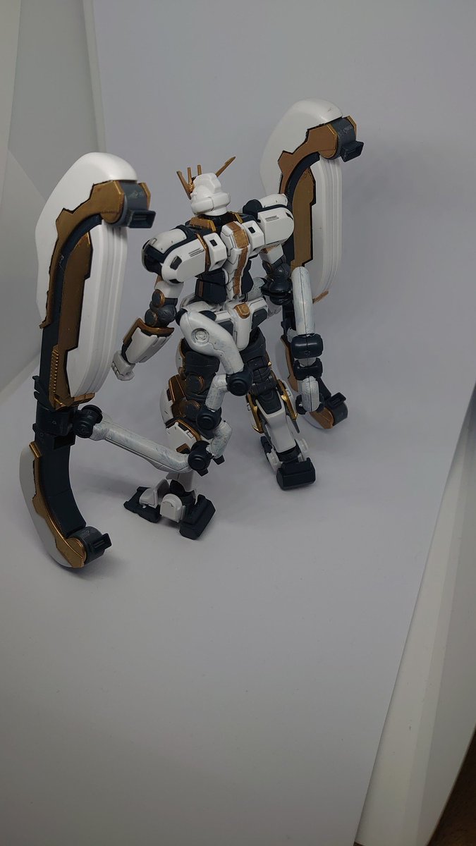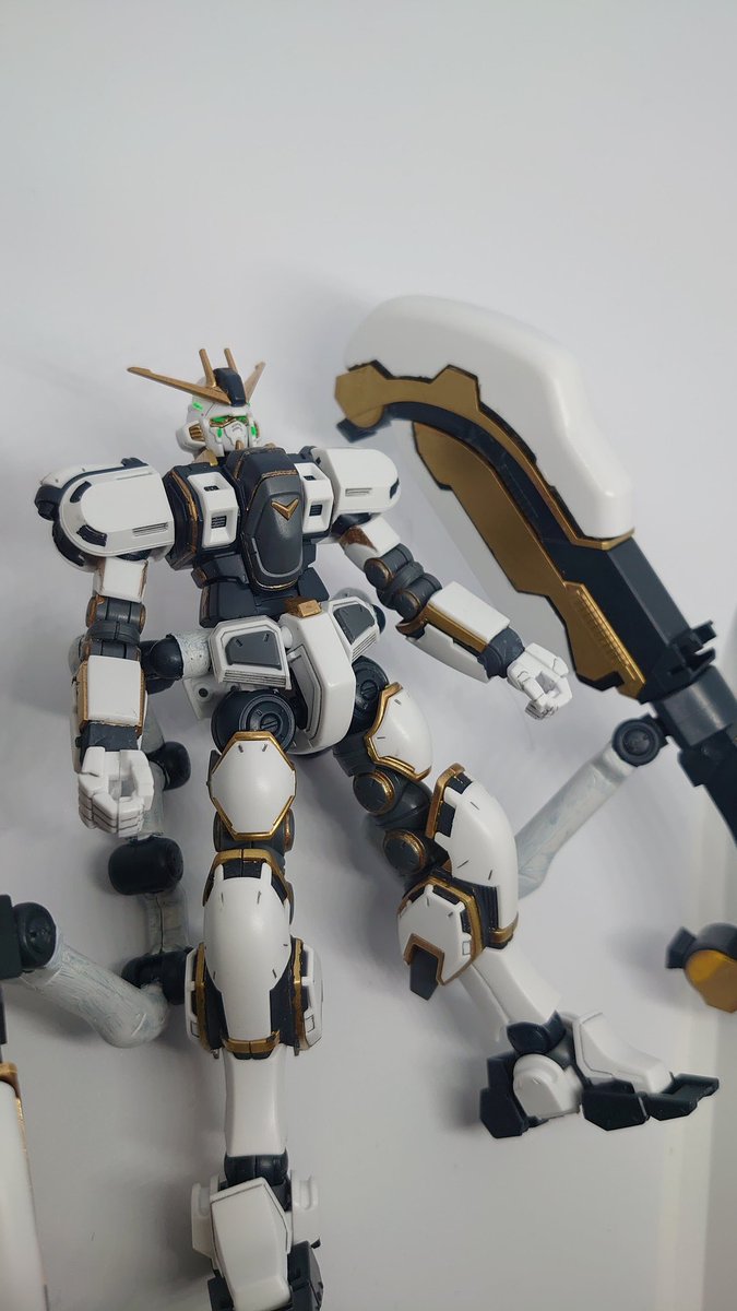 アトラスガンダム本体まで完成です!後は武装とデカール貼りを残すのみ。100均の金スプレーが結構いい感じ出してくれました♪サブレッグの調整ムズいwサンボルのMSはホントにカッコいいです。あと少し頑張ります! #ガンプラ #ガンプラの画像を貼るとRTされると聞いて #ガンプラ好きとつながりたい