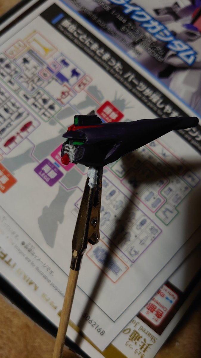 マスターガンダム塗装始めましたー♪HG風に紫と黒ベースで塗装していきます。ただ顔ムズいなぁ!これ以上イケメンにはならないかな… #ガンプラ #ガンプラの画像貼るとRTされると聞いて #ガンプラ好きとつながりたい