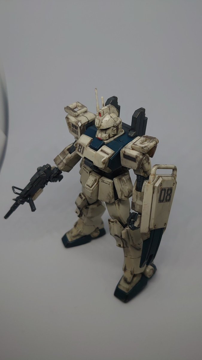 ガンダムEz8ウェザリング完了しました!1年ぶりにリアルタッチマーカー使用しましたが中々気に入ってます♪立ち膝ポーズはビルに影潜めてるイメージです。ジオラマ作ってグフカスと並べたくなりますね! #ガンプラ #ガンプラの画像を貼るとRTされると聞いて #ガンプラ好きな人と繋がりたい