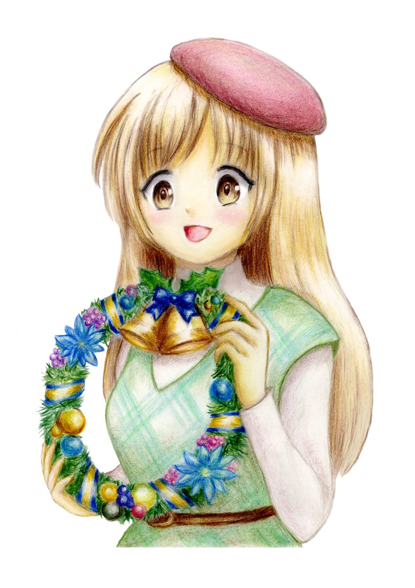 #紅白お絵描き合戦2021 #白組イラスト2021 ※エントリー参加者のみ利用可能タグ。便乗ツイートはご遠慮願います。 詳細はけばけばお絵描き競技場 @kbakba_arena 固ツイ参照 1枚目 「リース🔔🌿飾りましょ♪」 クリスマスっぽいのを描きたかったので✏ #色鉛筆 #アナログイラスト #クリスマス