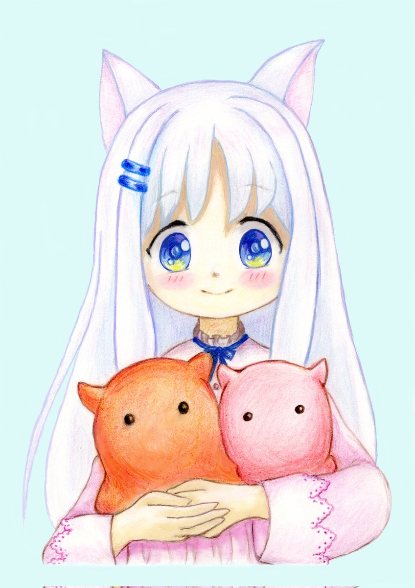 #紅白お絵描き合戦2021 #白組イラスト2021 ※エントリー参加者のみ利用可能タグ。便乗ツイートはご遠慮願います。 詳細はけばけばお絵描き競技場 @kbakba_arena 固ツイ参照 3枚目 メンダコぬいぐるみを貰って喜んでる うちの猫耳ちゃん (=^_^=)♪ #色鉛筆イラスト #オリジナル