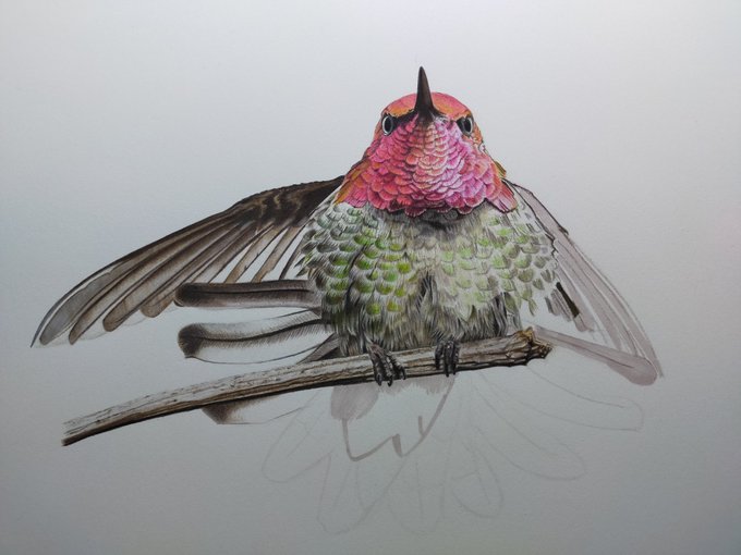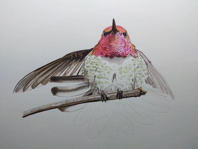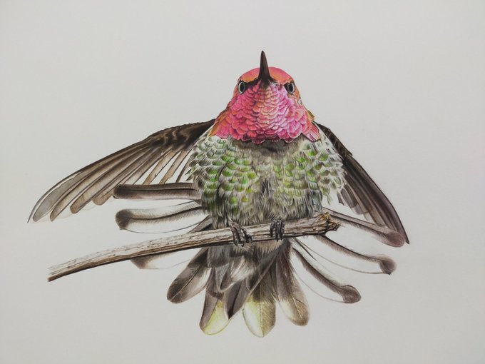 0 10 ここで始めて コピックペンを使ってみた もっと早くから試せば良かった らく。 で、お腹どうやって描こう… #ハチドリ #色鉛筆画 21/02/28 21:45