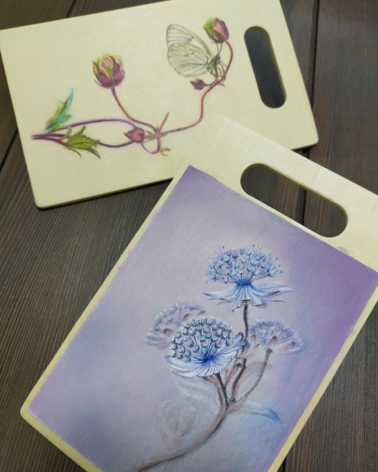 まな板アート2枚目になりました! #花の絵 #青い花 #色鉛筆画 #花のイラスト #植物画 #まな板アート #木材アート #チョークアート #ブリザードフラワー