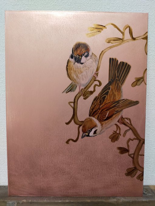 1 6 〜進捗〜 もう少し! 結局木も同じ色です そのかわり、 コピックの透明色を 始めて使ってみました 面白い #すずめのイラスト #雀の絵 #鳥の絵 21/03/13 20:49