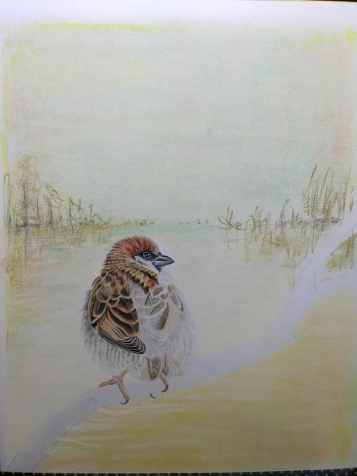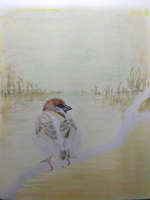 〜進捗〜 最近は ざっくりふんわりが好き #チョークアート #色鉛筆画 #雀の絵 #制作過程