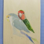 完成ですっ! 背景ありなしも好みで… #色鉛筆画 #コザクラインコ #木版と色鉛筆
