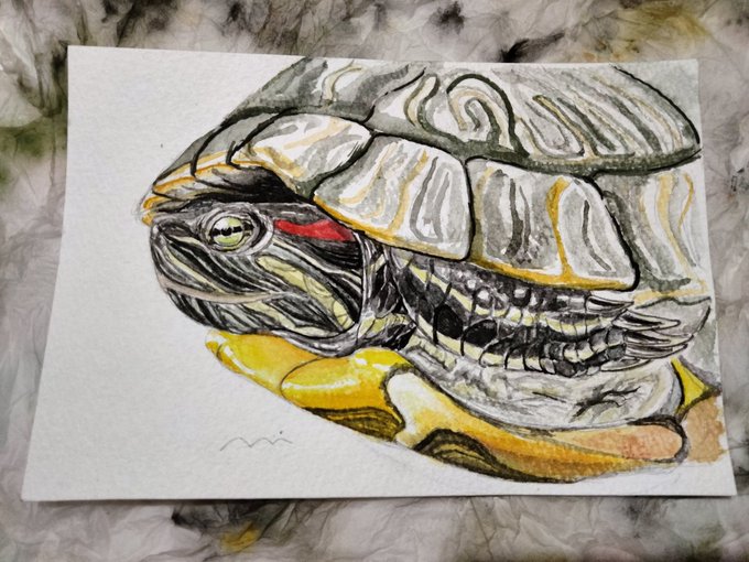 1 3 #100日チャレンジ ミシシッピアカミミガメ 066 #水彩画 #イラスト #カメ #art 23/07/02 19:58