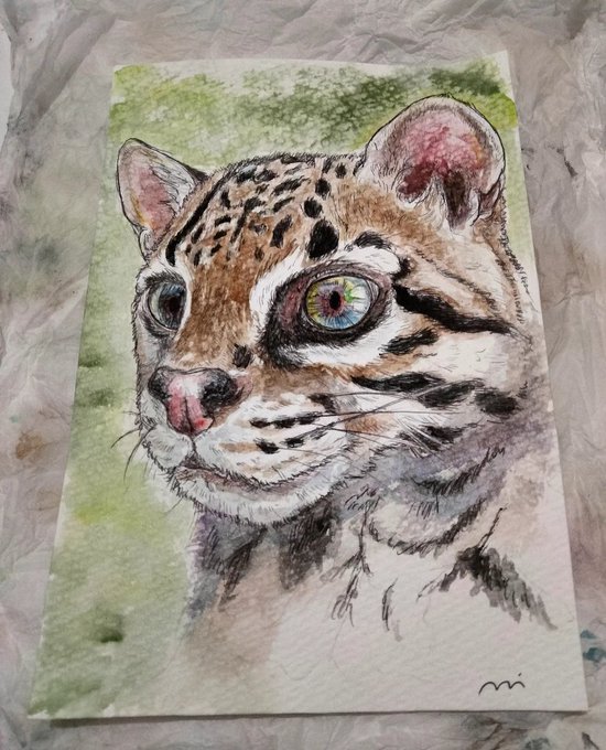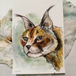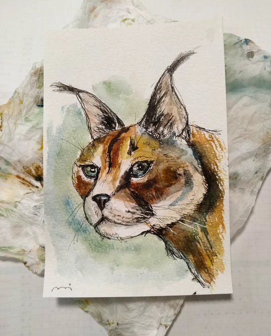 1 4 #100日チャレンジ カラカル 037 #水彩画 #イラスト #ネコ 23/02/20 23:08