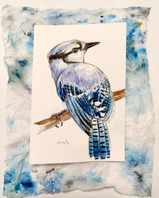 2 3 #100日チャレンジ アオカケス 043 #水彩画 #イラスト #鳥 #青 23/02/27 00:24