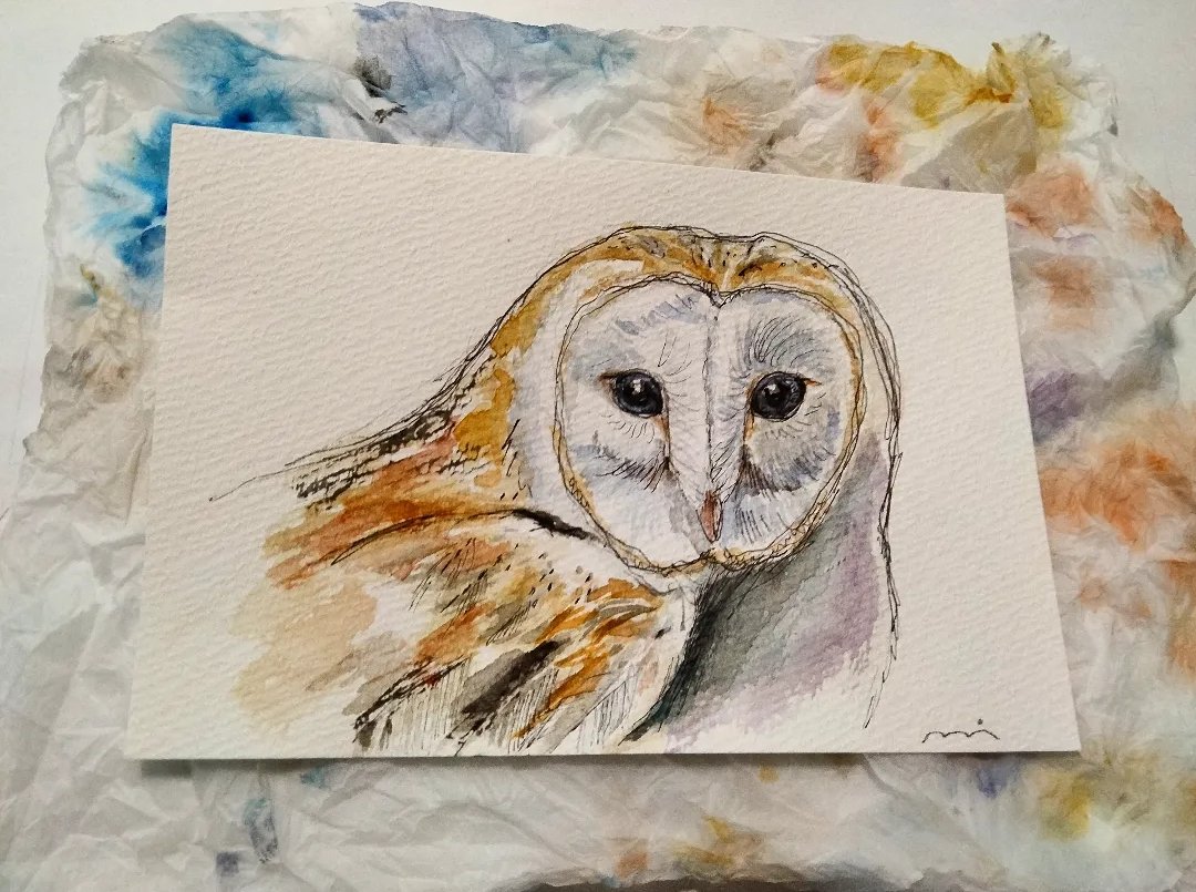 #100日チャレンジ メンフクロウ 038 #水彩画 #イラスト #フクロウ