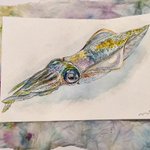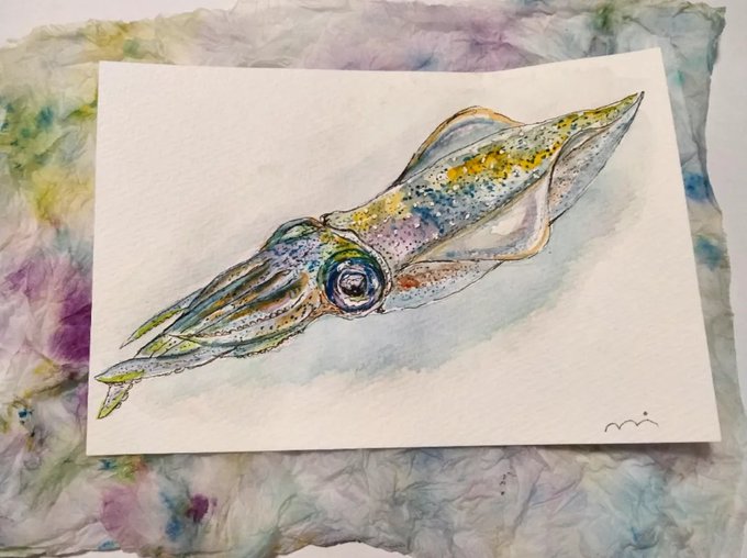 1 5 #100日チャレンジ アオリイカ 040 #水彩画 #イラスト #イカ 23/02/23 22:55