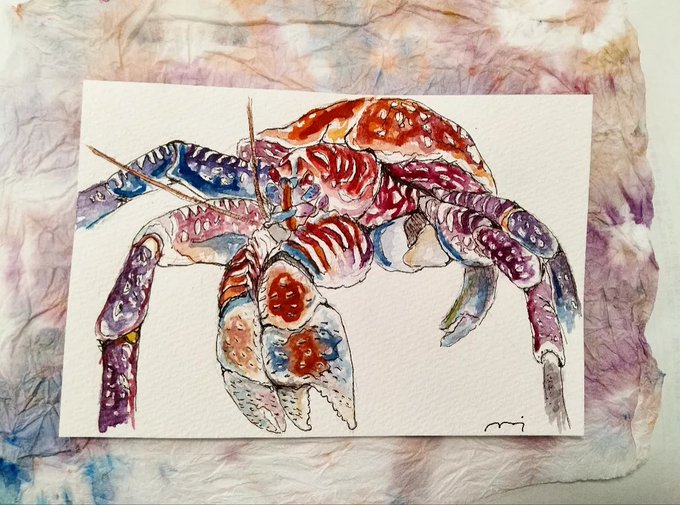 4 14 #100日チャレンジ ヤシガニ 045 #水彩画 #イラスト #ヤシガニ #アート 23/03/01 07:54