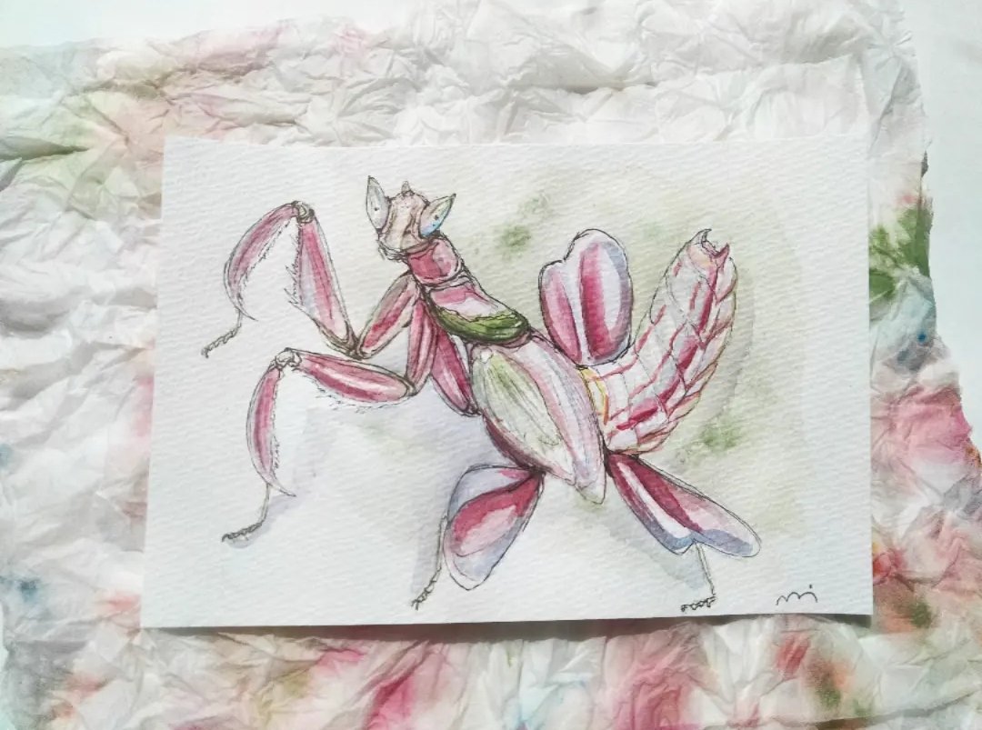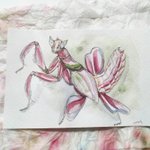 2 5 #100日チャレンジ ハナカマキリ 048 #水彩画 #イラスト #カマキリ #ひな祭り 23/03/04 11:01