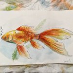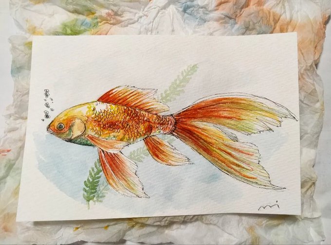 1 3 #100日チャレンジ 金魚 049 #水彩画 #イラスト #金魚 #魚 23/03/05 23:57