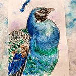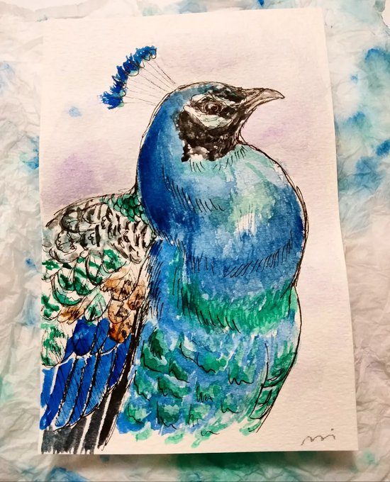 1 4 #100日チャレンジ クジャク 050 #水彩画 #イラスト #鳥 23/03/07 00:37
