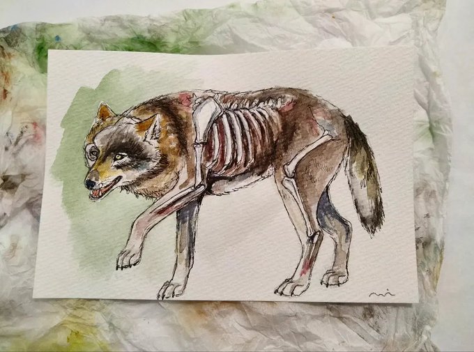 2 12 #100日チャレンジ オオカミ 051 #水彩画 #イラスト #オオカミ #骨 23/03/08 21:07
