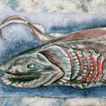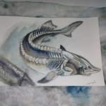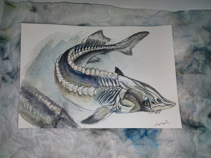 3 9 #100日チャレンジ チョウザメ 053 #水彩画 #イラスト #魚 #骨 23/03/15 10:58