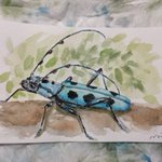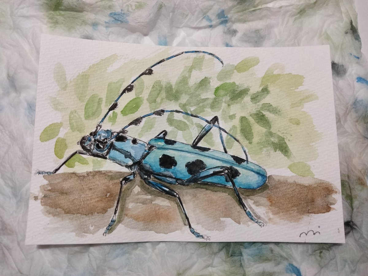 0 4 #100日チャレンジ ルリボシカミキリ 055 #水彩画 #イラスト #虫 #絵 23/03/26 19:43