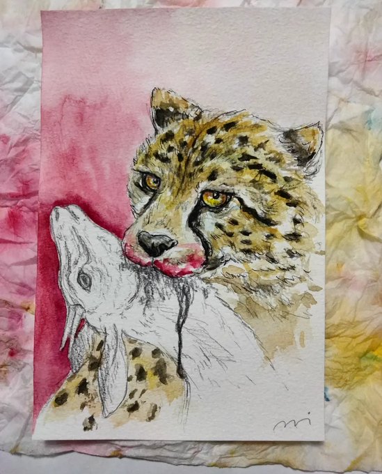 1 6 #100日チャレンジ チーター 056 #水彩画 #イラスト #動物 23/03/28 08:52