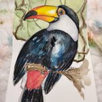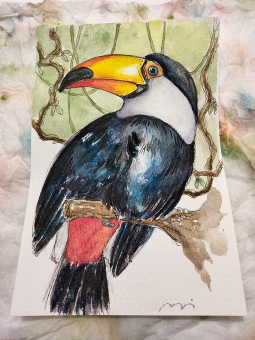 1 7 #100日チャレンジ オオハシ 058 #イラスト #水彩画 #鳥 23/04/06 09:29