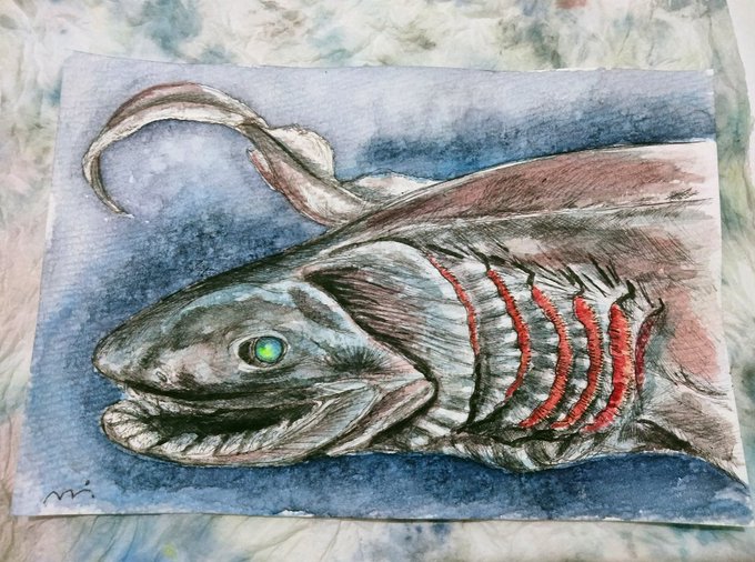 1 6 #100日チャレンジ ラブカ 061 #水彩画 #イラスト #サメ #海 #art 23/04/30 21:16