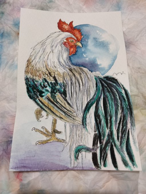 2 7 #100日チャレンジ 尾長鶏 060 #水彩画 #イラスト #鶏 #art 23/04/23 22:35