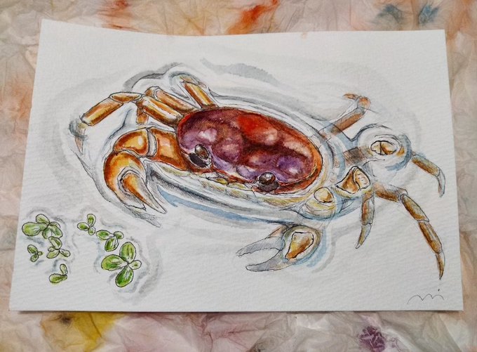 1 8 #100日チャレンジ サワガニ 064 #水彩画 #イラスト #カニ #夏 #art 23/06/12 07:41