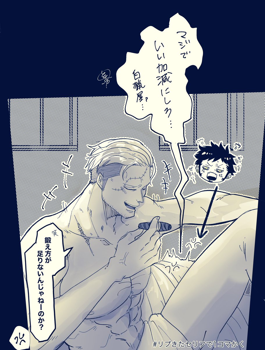 タグで頂いたセリフで一コマ描かせて頂きました! 相手は海軍を裏切ったモブ…という設定で🙇♂️ 縄なんてすぐぶっちぎってしまいそうなスモの首…垂れ下がる縄がまるで首輪のようだ…! この後ちゃんとブチ切れロくんが助けに来てくれます!すもろ!! twitter.com/tori_soukutsu/…