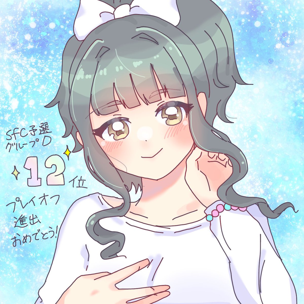 「あたしの目に映る色は、ぜーんぶラッキーカラー! だって、アイドル始めてから今まで...ずっと幸せだし♪」 #SfCプレイオフ は #藤居朋🔮 ちゃんを #是非ともふじとも今後とも よろしくお願いします! #StageforCinderella