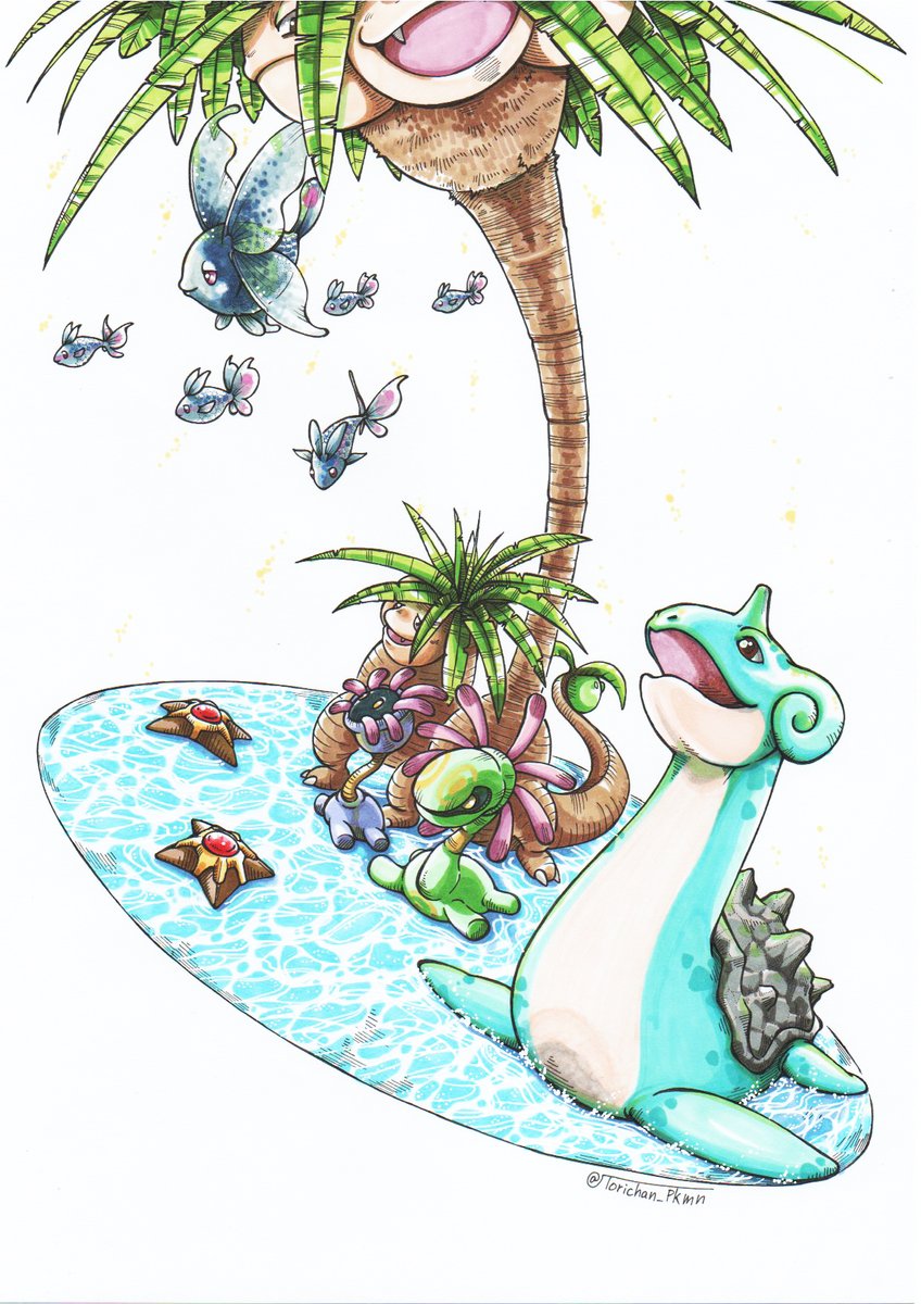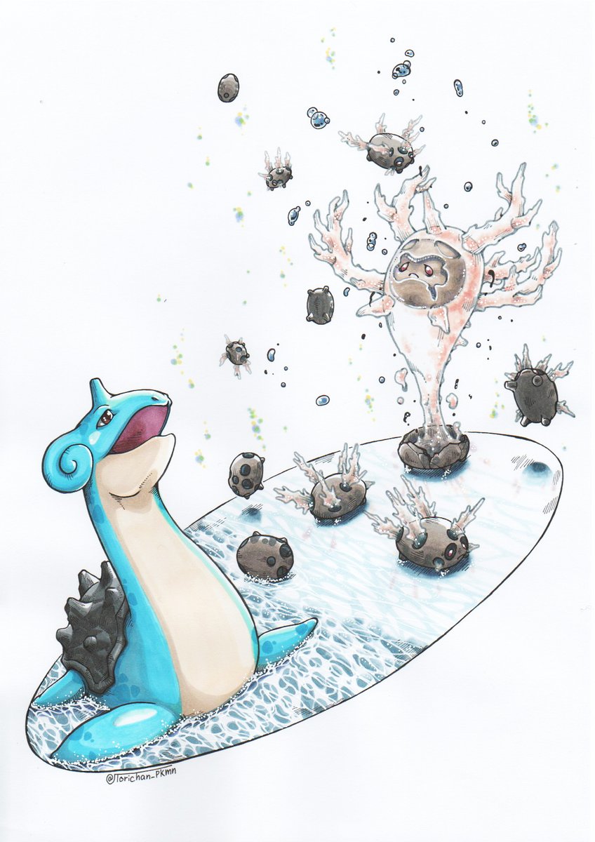 #自分の絵柄の特徴あげてもらってそれを全部封印した絵を描く 「黒の主線」と「緑色」を封印されました、 普段変わった事やらないので この機に遊んでみた😌 twitter.com/torichan_pkmn/…