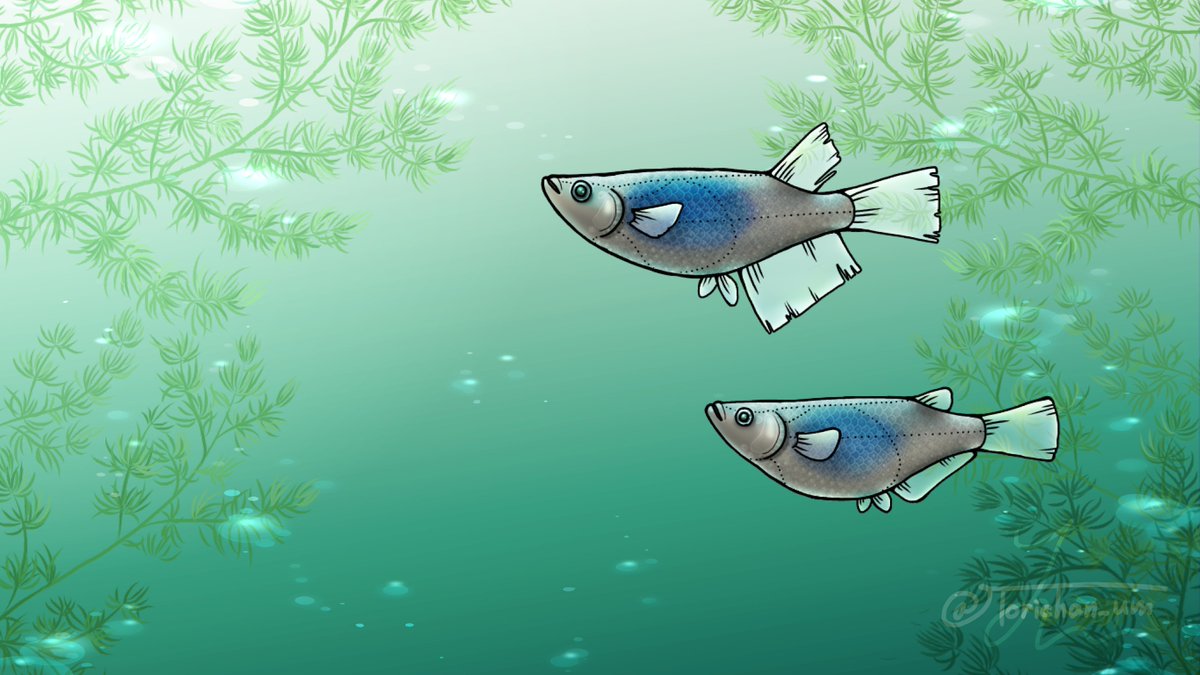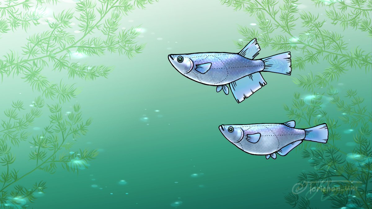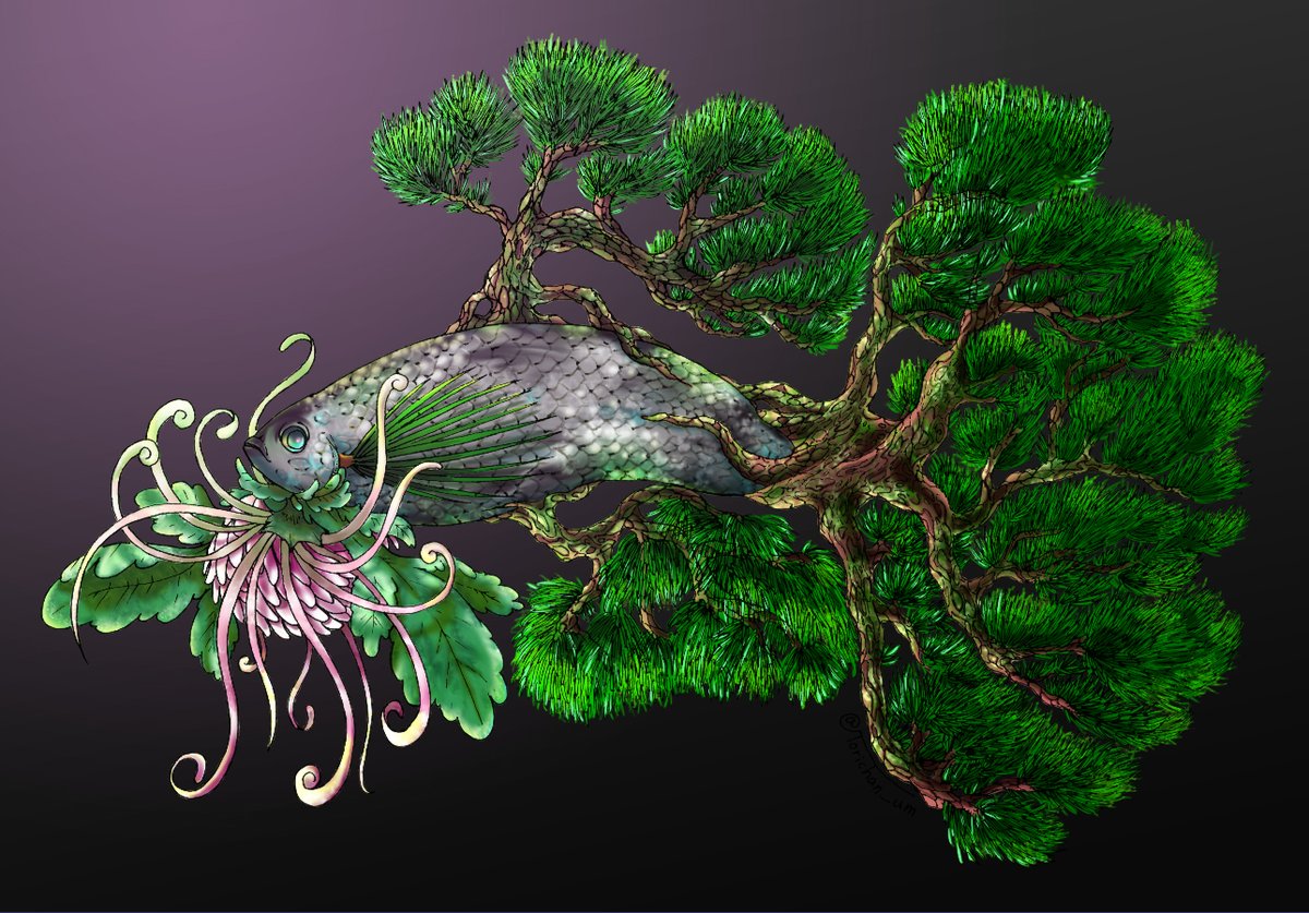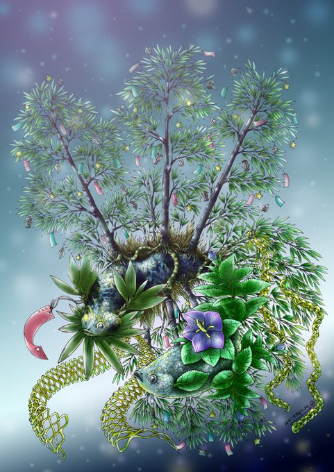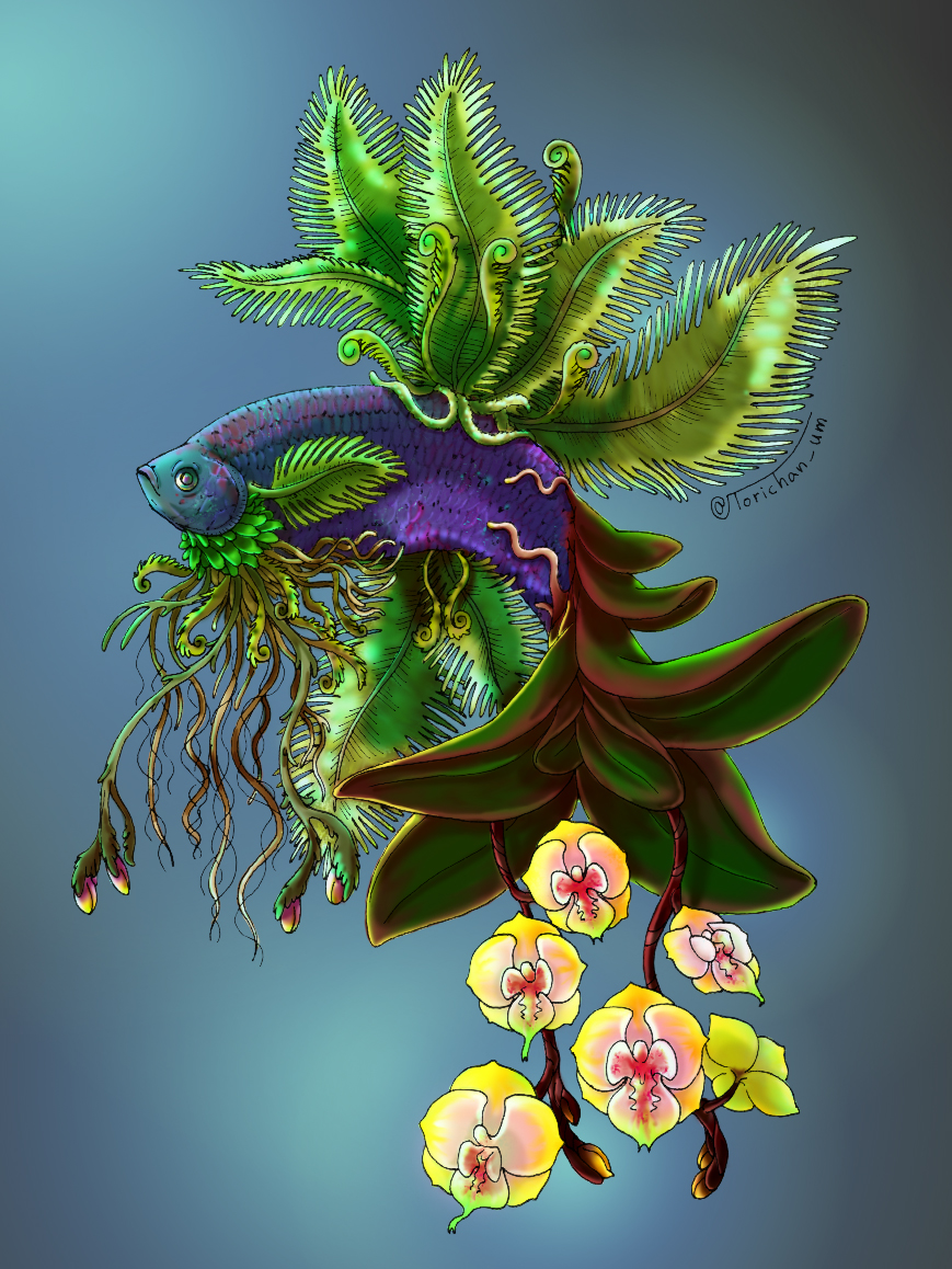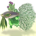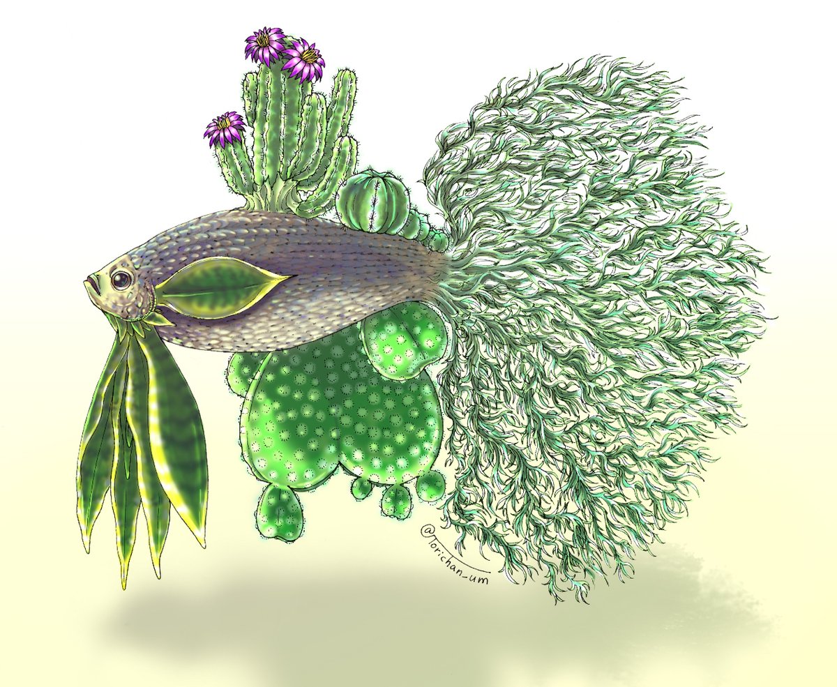 4種類 色塗り完成ー(/・ω・)/ 色のセンスほしい(;´・ω・) 背景の配色とハイライトで使う色に無駄に悩む #今月描いた絵を晒そう #イラスト #熱帯魚 #植物 #どこかの誰かに刺さればそれで良い