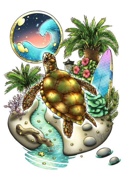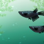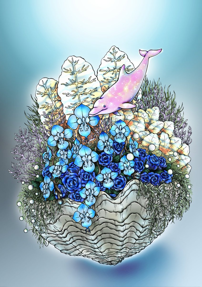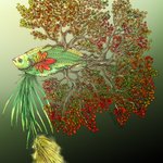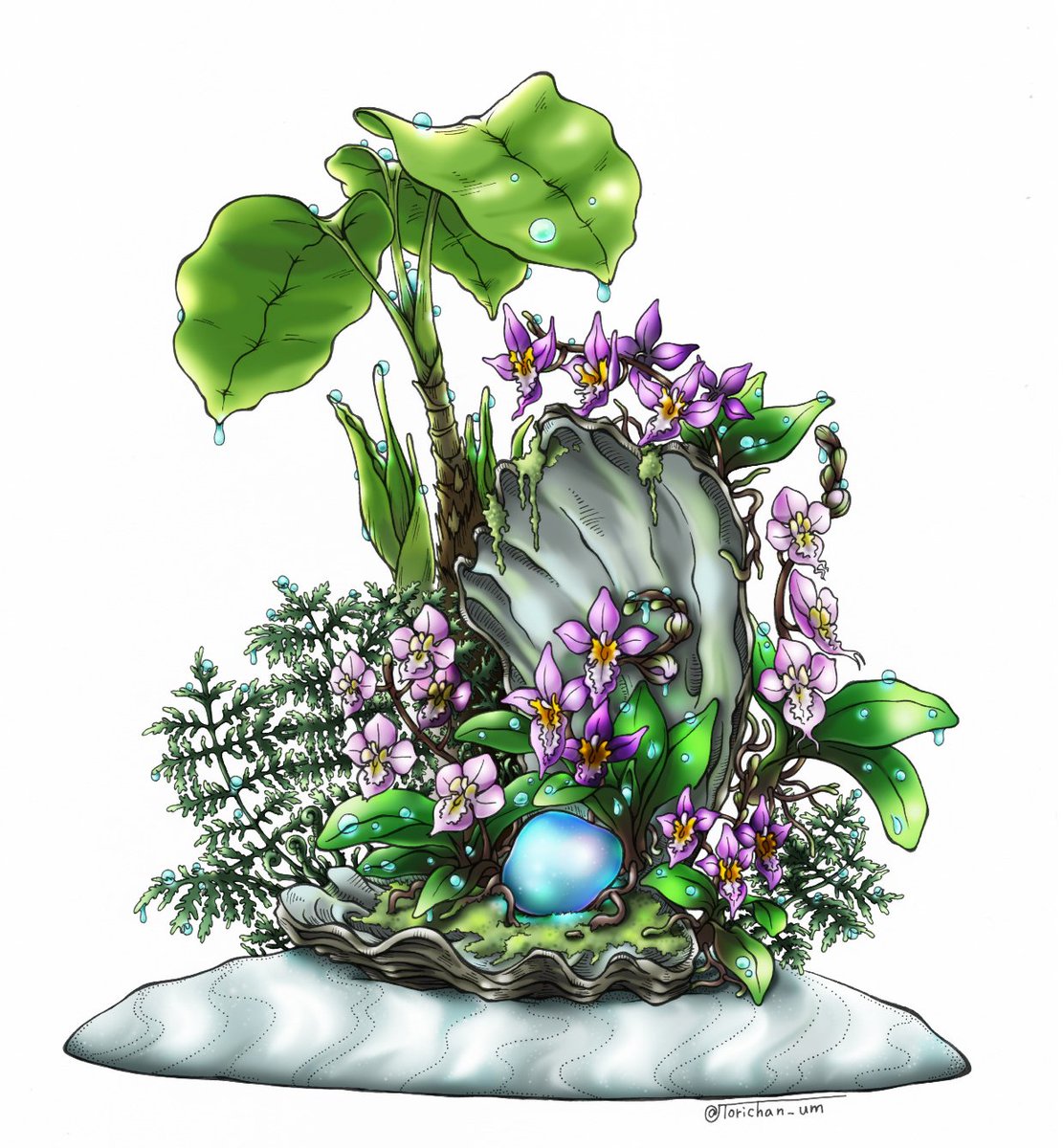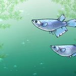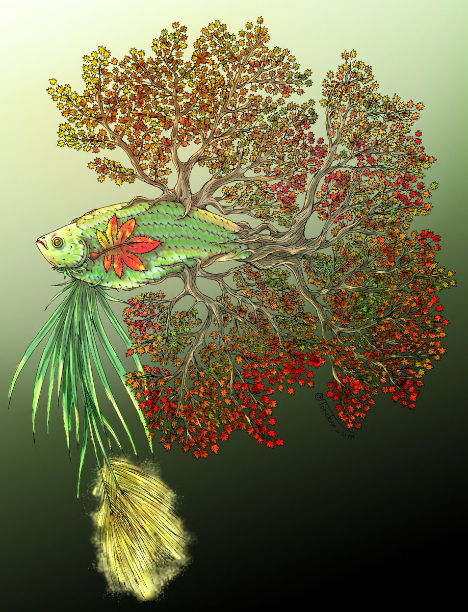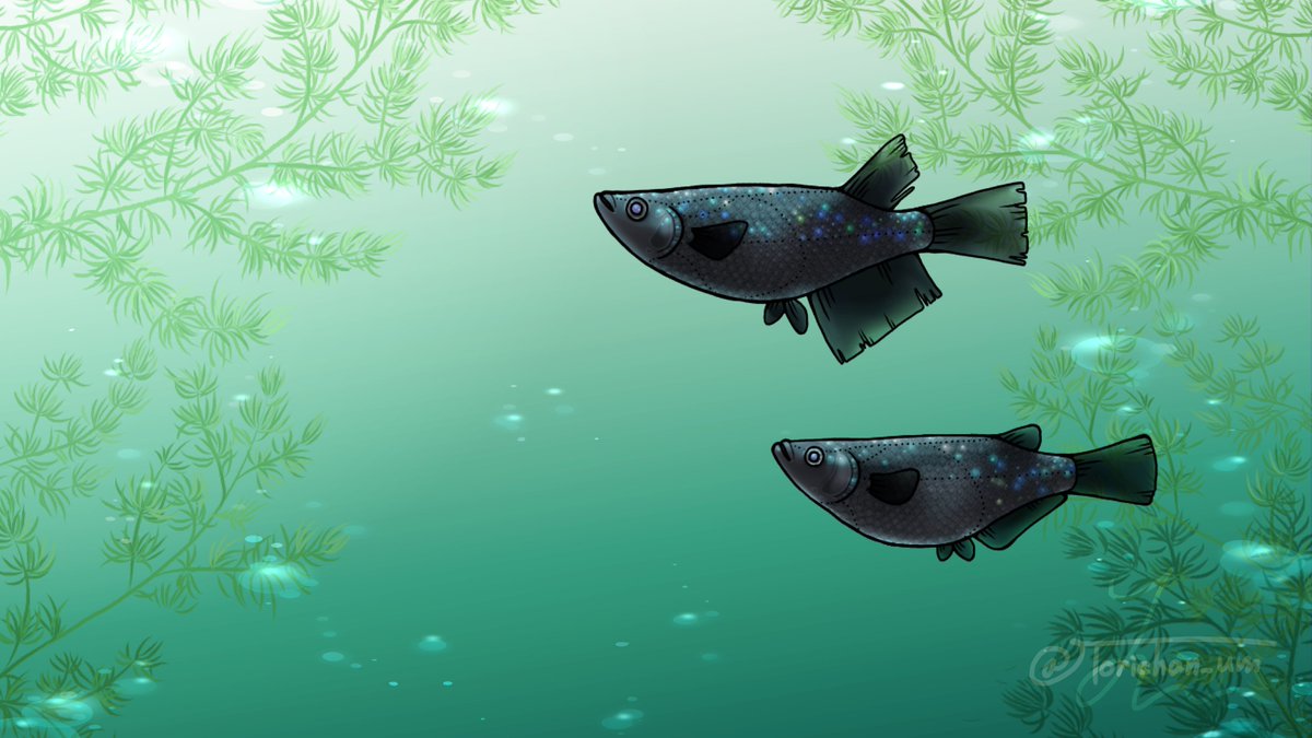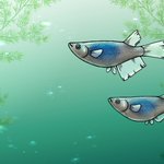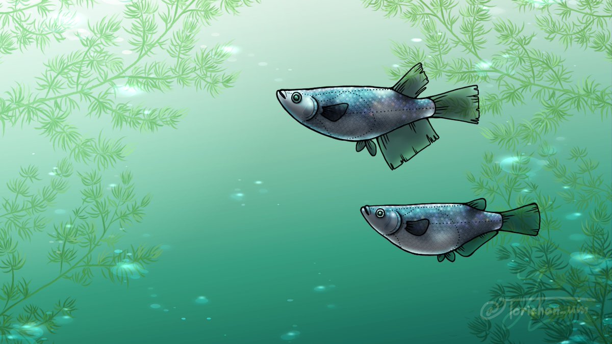 4種類 色塗り完成ー(/・ω・)/ 色のセンスほしい(;´・ω・) 背景の配色とハイライトで使う色に無駄に悩む #今月描いた絵を晒そう #イラスト #熱帯魚 #植物 #どこかの誰かに刺さればそれで良い