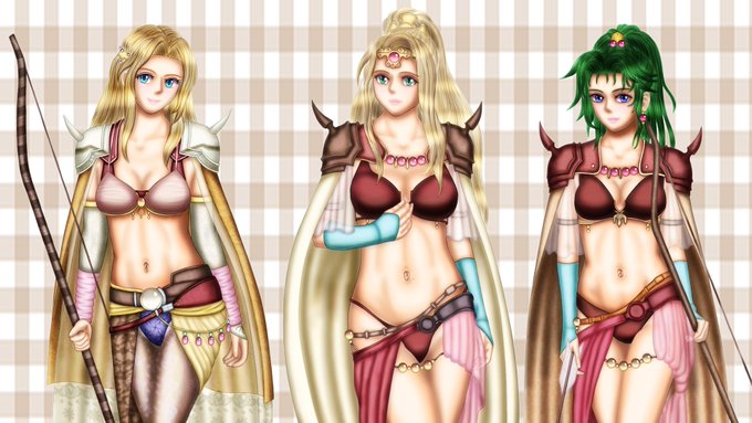 シャドウバン解除されたけどまたシャドウバンされそうな絵を再掲!🤣 左側:ローザ様コスのセリス 真ん中:白魔道士ローザ様ご本人 右側:ローザ様コスのティナ #サムネが横になったから横画面の絵貼ろう絵描きも見たらやる
