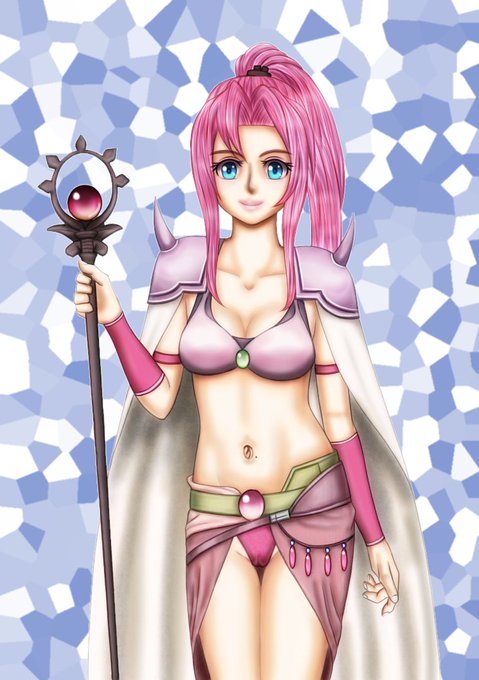 線画に1.5日塗りに2.5日の計4日で仕上げた✍️🧐⁉️ SFC版ドットパターンイメージの白魔道士ローザ様! 👙🌹✨(ぶっちゃけ作画コストの神様的存在🤣) #皆さん線画と塗った後を見せてください #作画カロリーの低い作品を上げようぜ