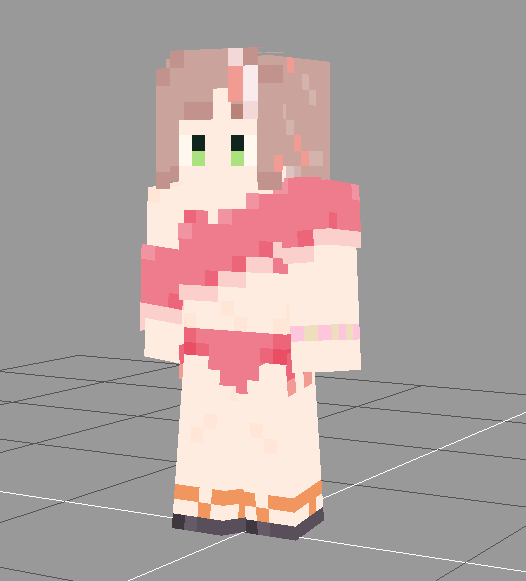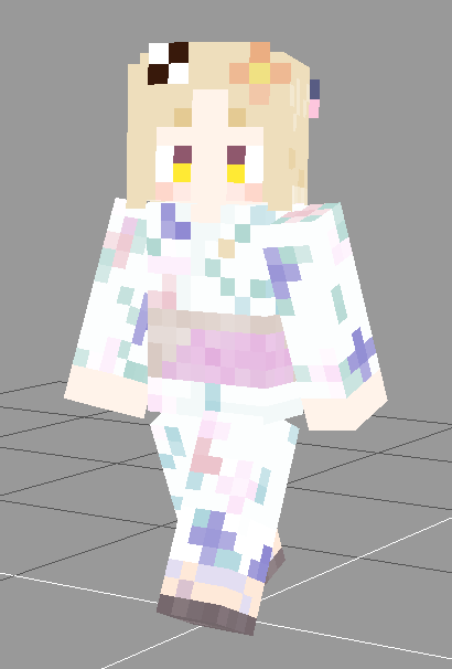 ちまちゃんの浴衣Ver2出来た ちゃんとアウター使って、帯を濃くして、簪を足して完成、胴のアウターは使ってないけど追加するとしたら帯締めと帯止めかなぁ minecraft.novaskin.me/skin/509251309… #描いてみまちた