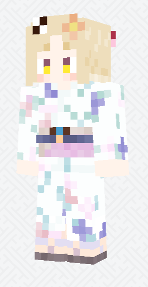何度も作り直しすみません… ちまちゃんの浴衣Ver2.1ということで何卒。 アウターの変な1ドットを消して、帯締めと帯止めを追加、カラーリングの変更に伴いゆめおカラーをinしました。 minecraft.novaskin.me/skin/509823321… #描いてみまちた