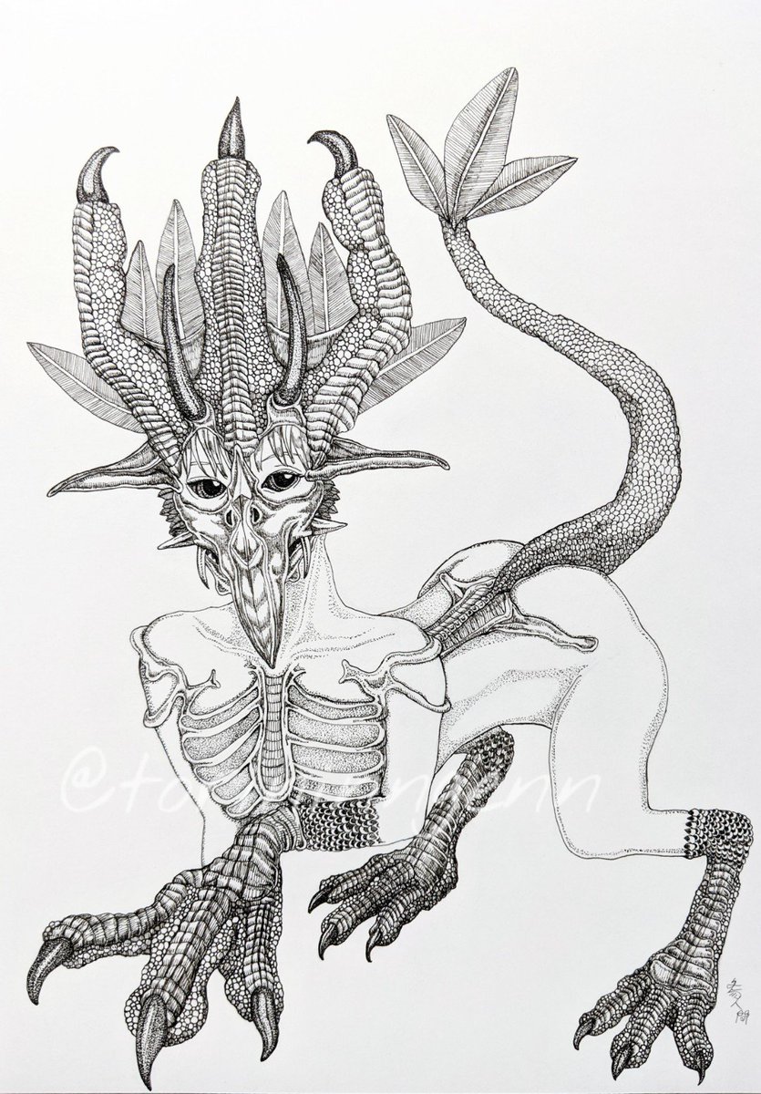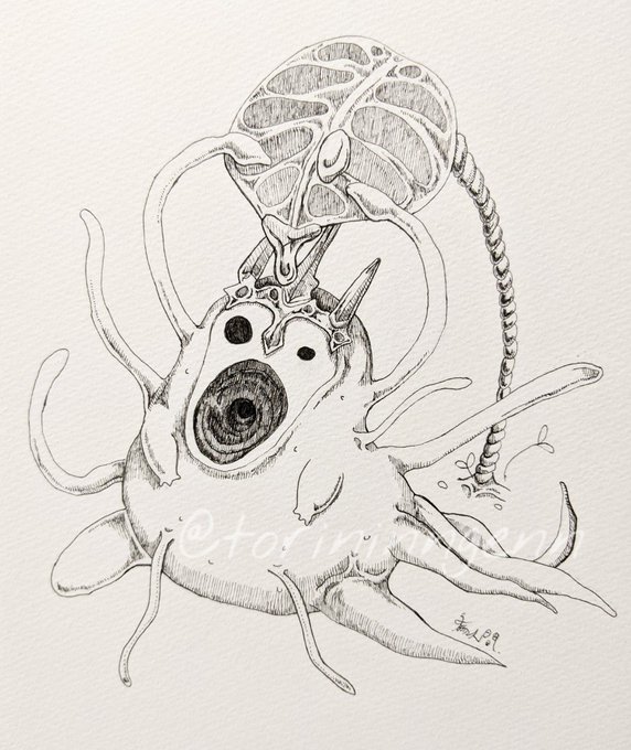 どこか違う世界で産まれ、ただ自由に生きているもの #ペン画 #イラスト #クリーチャー #illustration #drawing