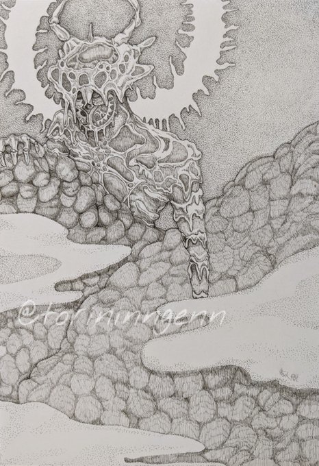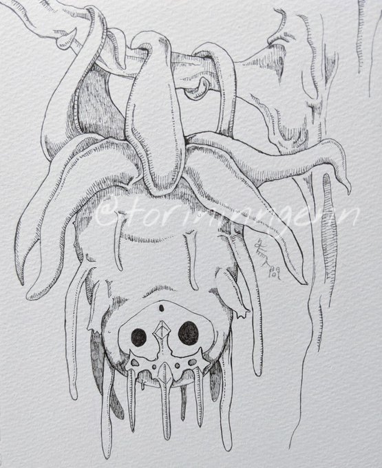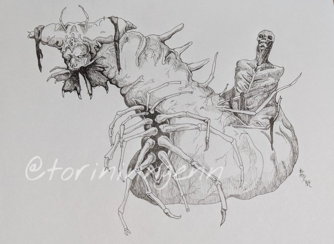 最近は行き当たりばったりで、描けるときに描けるだけ描く感じでやってる。今描いてるやつ #ペン画 #イラスト #クリーチャー #illustration #drawing
