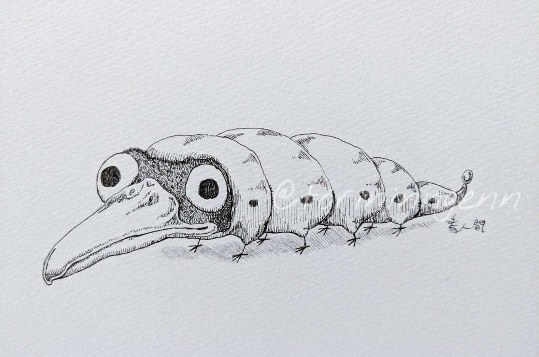 トリムシさん。よくさえずる、意外と美声。 #ペン画 #イラスト #クリーチャー #illustration #drawing