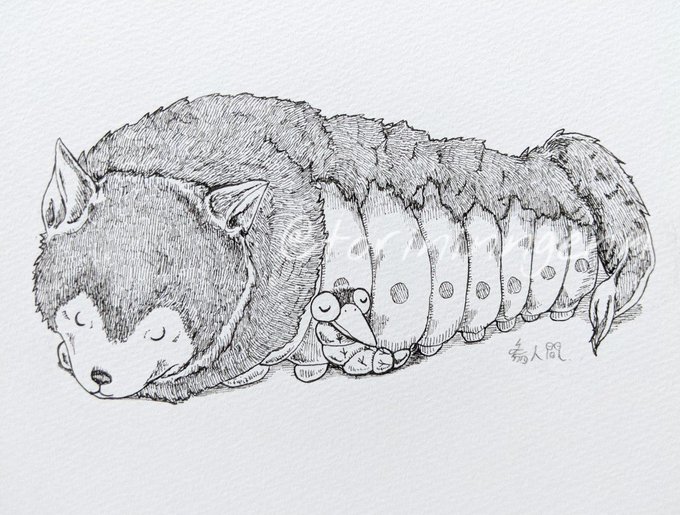2 19 オオカミムシさんとトリムシさん。仲良くお休み中。 #ペン画 #イラスト #クリーチャー #illustration #drawing 21/12/18 20:45