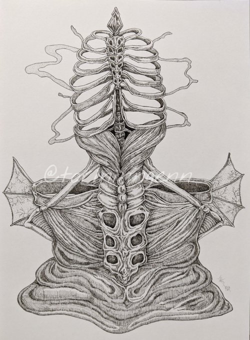 白昼夢のトルソー 腹と腰あたり描くのが好き #ペン画 #イラスト #クリーチャー #illustration #drawing