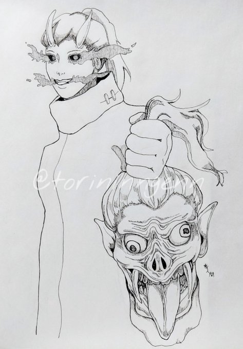 生首描くの楽しかった #ペン画 #イラスト #クリーチャー #illustration #drawing