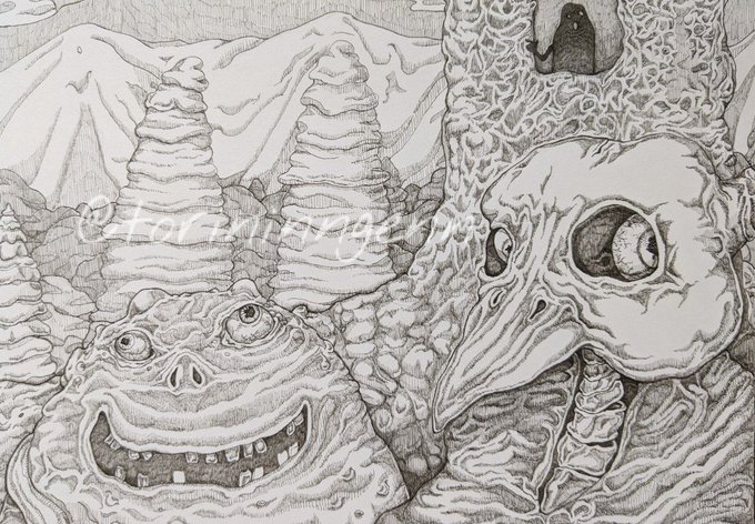 きれいな景色と愉快なものたち #ペン画 #イラスト #クリーチャー #illustration #drawing