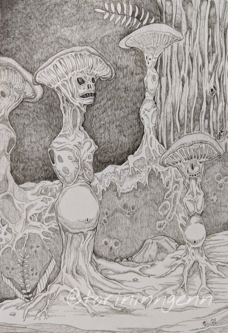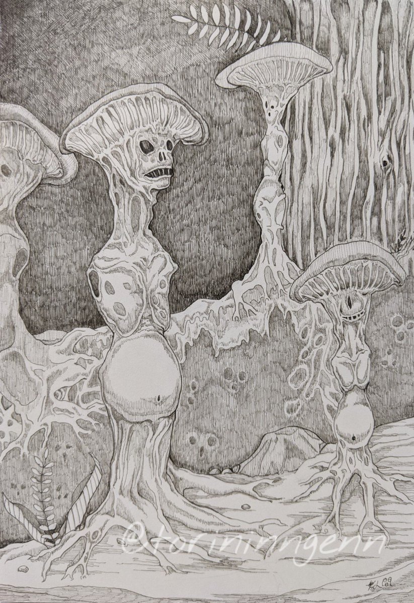 暗い森の底 #ペン画 #イラスト #クリーチャー #illustration #drawing